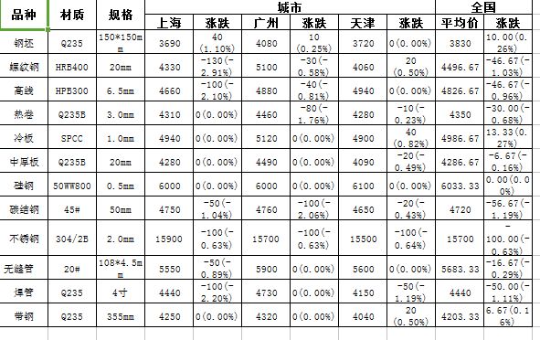 12月27日鋼材重點產(chǎn)品價格匯總