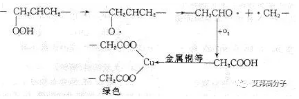 氫過氧化基團引起的鏈的斷裂導致分子量降低,其均裂的主產(chǎn)物為醇、醛、酮,最后氧化成羧酸。羧酸對金屬催化氧化起著主要作用。