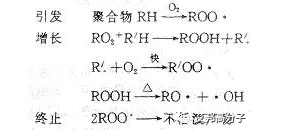 聚烯烴的熱氧化屬于自由基連鎖反應機理,有自動催化行為,可分為引發(fā)、增長、終止三步反應: