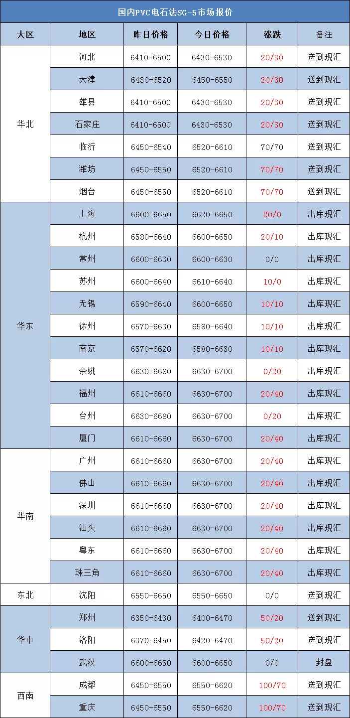 PVC市場(chǎng)主流成交價(jià)格小幅度調(diào)漲,整體成交尚可