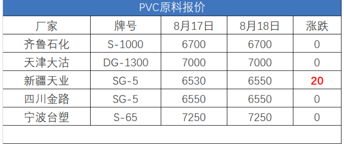 文章標(biāo)題:8月18日 PVC塑膠原料報(bào)價(jià)