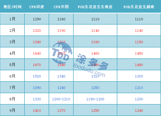 臺灣省臺塑9月船期報(bào)價(jià):(美元/噸)